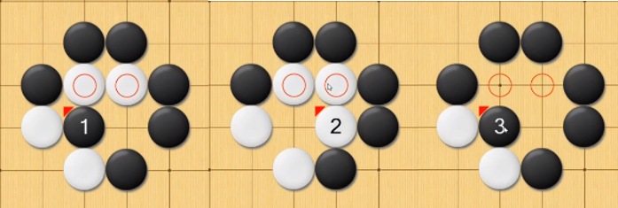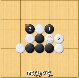双打吃即为将棋下在对方两块两口气的公共点上面,如下图黑棋3的位置所示: