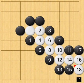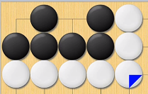 倒扑就是在对方虎口内投一着,如果对方提吃,仍可再吃掉对方更多棋子的着法。如下所示: