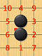 接下来就是要说明棋子的气,气为棋子周围可以直线相连的点。可以看到下图中黑棋有两个,其边部有1-10十个可以落子的地方,其中1-6为黑棋的气,白棋若把黑棋的气全部占满,则两个黑棋为死棋被吃。